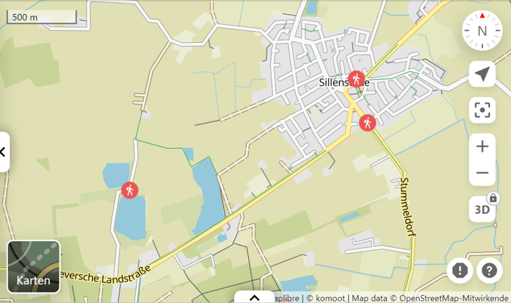 Unsere Wahl fiel dann auf den Nachbarort „Sillenstede“. Auch hier bot die Gemeinde mehrere Stellplätze im Ortskern an. Nach einer 10 minütigen Fahrt kamen wir an und befanden den Platz für gut. Wir parkten ein, machten uns ein Getränk und ich suchte schnell eine Möglichkeit, uns mit Solana gleich ein wenig zu bewegen. Auch hier gab es direkt vom Stellplatz aus die Möglichkeit eine Runde um zwei Seen zu starten. Klasse! Wie viele tolle Möglichkeiten es bei uns hier gibt!