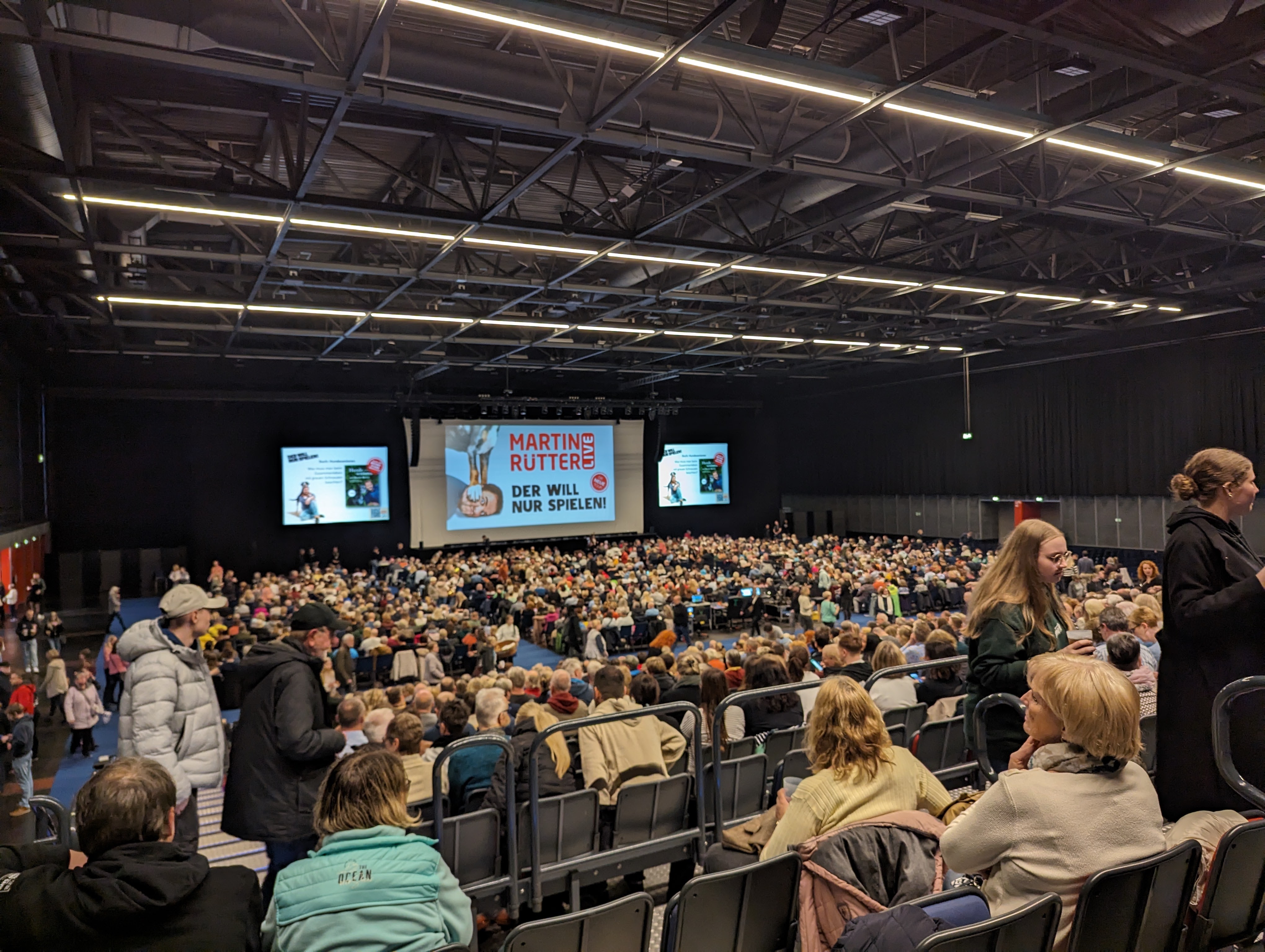 Martin Rütter ist Deutschlands bekanntester Hundeprofi. Mit seinen Büchern, DVDs und TV-Shows hat er Millionen von Menschen erreicht und ihnen dabei geholfen, ihre Hunde besser zu verstehen und zu erziehen – hört man. Sein neues Programm „Der will nur spielen“ – so dachte ich – soll Hundehaltern zeigen, wie sie ihrem Vierbeiner ein abwechslungsreiches und artgerechtes Spielangebot bieten können. Oder wie Hundeerziehung spielerisch gestaltet werden kann, oder irgend so etwas…