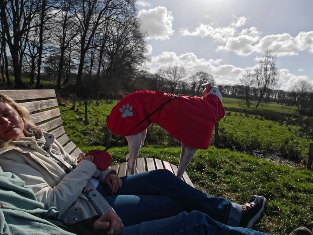 Solana arbeitete – wie gewohnt – nicht sondern räkelte sich – wie gewohnt – divenhaft in der Sonne auf ihrem Hunde-Lady-Sonnen-Sofa-Bett.