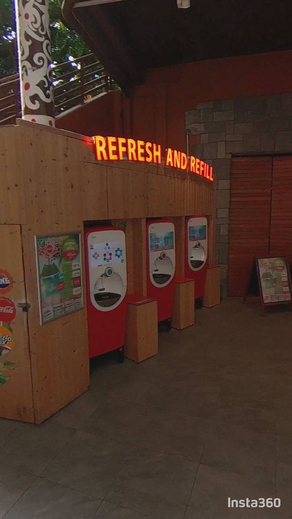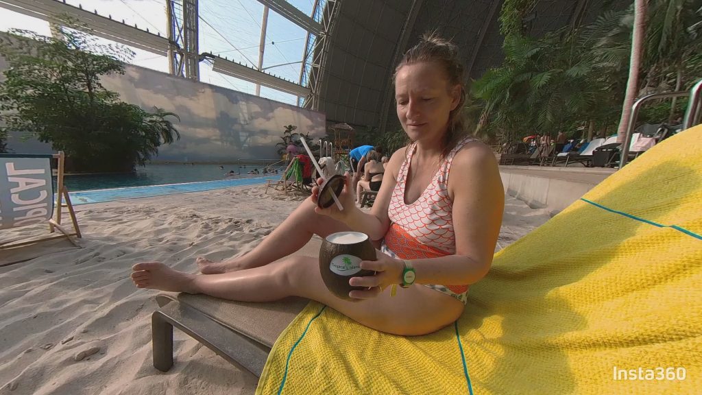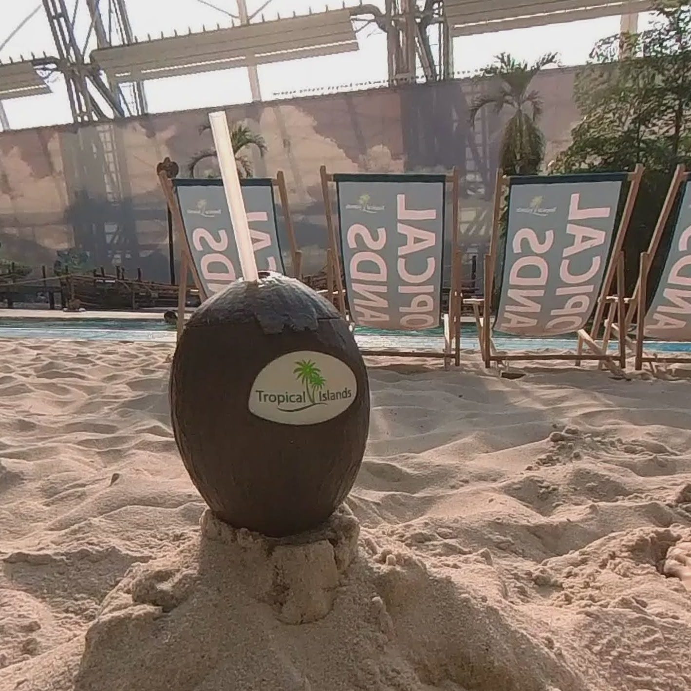 Der Ablauf des Vormittags ist schnell erzählt. Da wir auch nicht mehr so unvorhergesehen beeindruckt waren, waren wir sehr zielstrebig an der Südsee. Hier kaperten wir zwei Liegen (in zweiter Reihe – obwohl die erste frei war…Angst vor Wasserspritzern 😉 ) und sahen eine Frau mit einer Kokosnuss. Sie trank daraus genüsslich mit dem Strohhalm ein Getränk… Alkohol? Um 9??? Warum nicht? Also gingen wir zur Strandbar Palm Beach und fragten, welches Getränk denn in dieser wunderbaren Nuss serviert wird. Es handelte sich um eine Plastikkokosnuss, die man hier käuflich erwerben konnte und die man mit einer Getränkeflatrate alle 45 Minuten an einer der zahlreichen „refresh ´n´ refill“ Stationen erneut befüllen konnte. Dazu kannst du aus über 100 Getränken wählen….! Wahnsinn.. Ich probierte Calo Zero Kirsche, Himbeere, Vanille, Kirsch-Vanille…Am Ende blieb ich bei Cola Zero Himbeer.. Kate´s Favorit wurde eine zuckerfreie Himbeer-Schorle. Die Nüsse, konnte man am nächsten Tag für 14 Euro erneut für eine Tagesflatrate freischalten lassen. Prost!