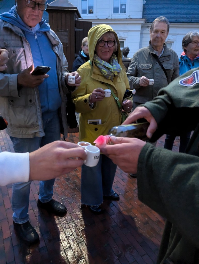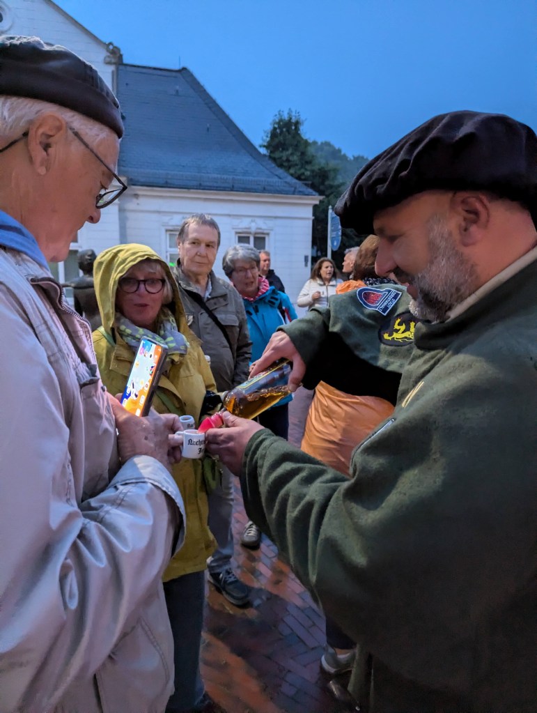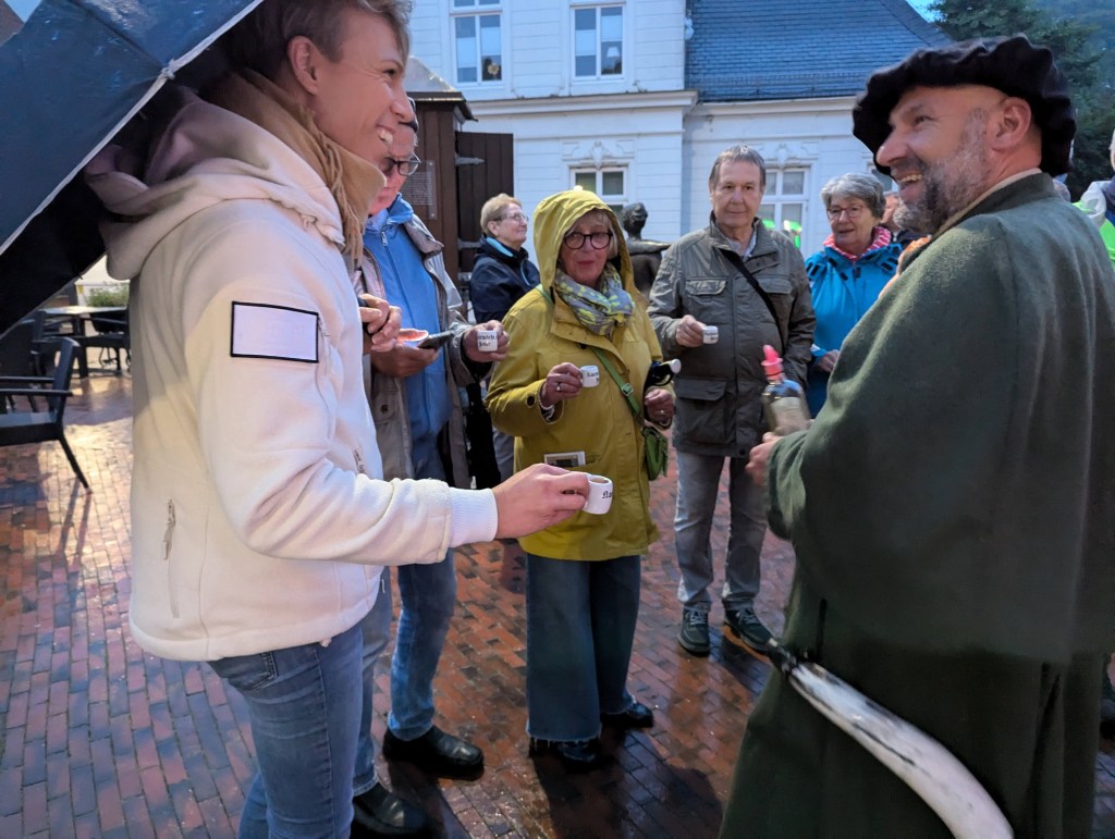 Ist Fräulein Maria tatsächlich in einem unterirdischen Gang verschwunden? Warum gibt es um 22Uhr das Marienleuten? Was hat es mit dem schwarzen Gitterkäfig an der Graft auf sich? Und wieso gibt es in Jever so viele Brunnen? Auf diese Fragen gab uns der Nachtwächter Antworten – und letztendlich an der „Küster-Pütt“ einen „Schluck“ aus.