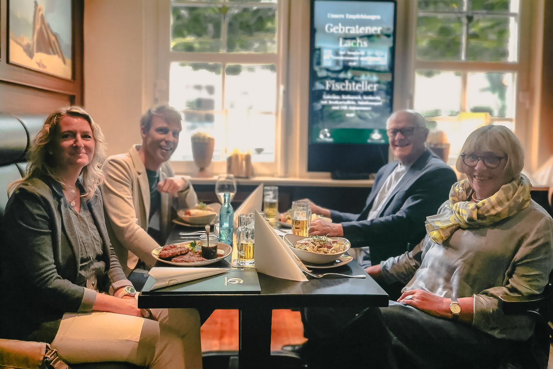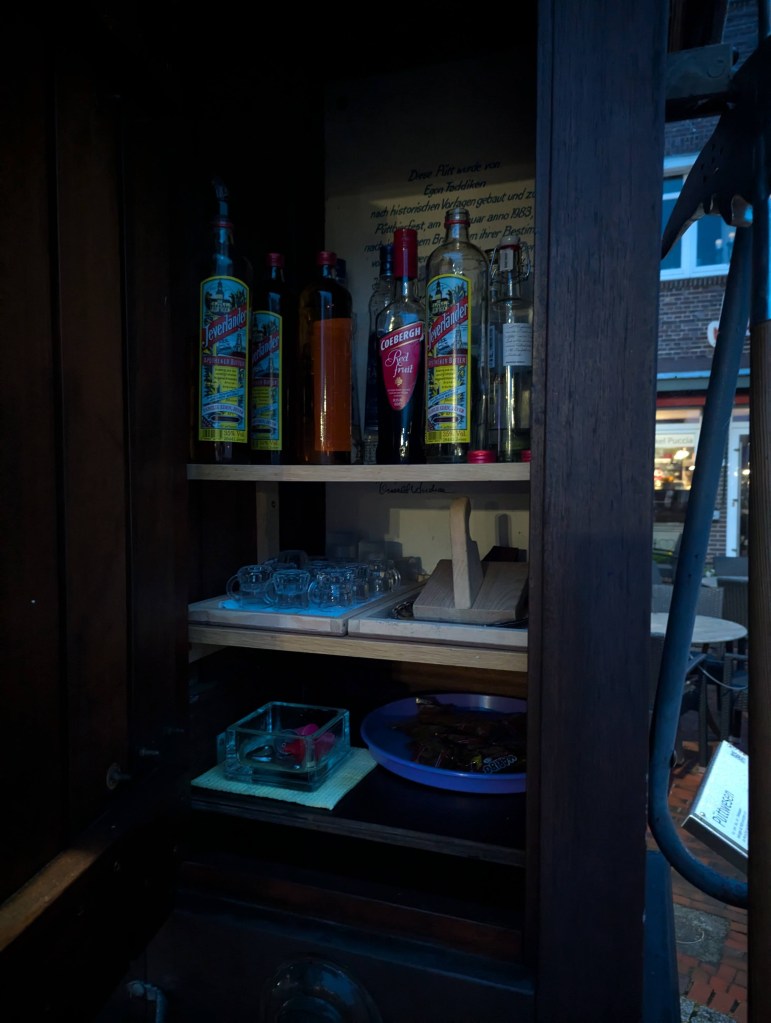 Wir fuhren am Freitag gegen 1430 Uhr los – die kurze Fahrt endete schon ca. 30 Minuten später auf dem Wohnmobilstellplatz „Jahnstraße“ in Jever. Nach einer kurzen Begrüßung von Brigitte und Uli, die schon mit ihrem Integra seit dem Vormittag in Jever waren, gingen wir gemeinsam zum „Haus der Getreuen„. Dort hatte ich einen Tisch – als Teil 1 des vorzeitigen Geburtstagsgeschenks für Uli – reserviert.
