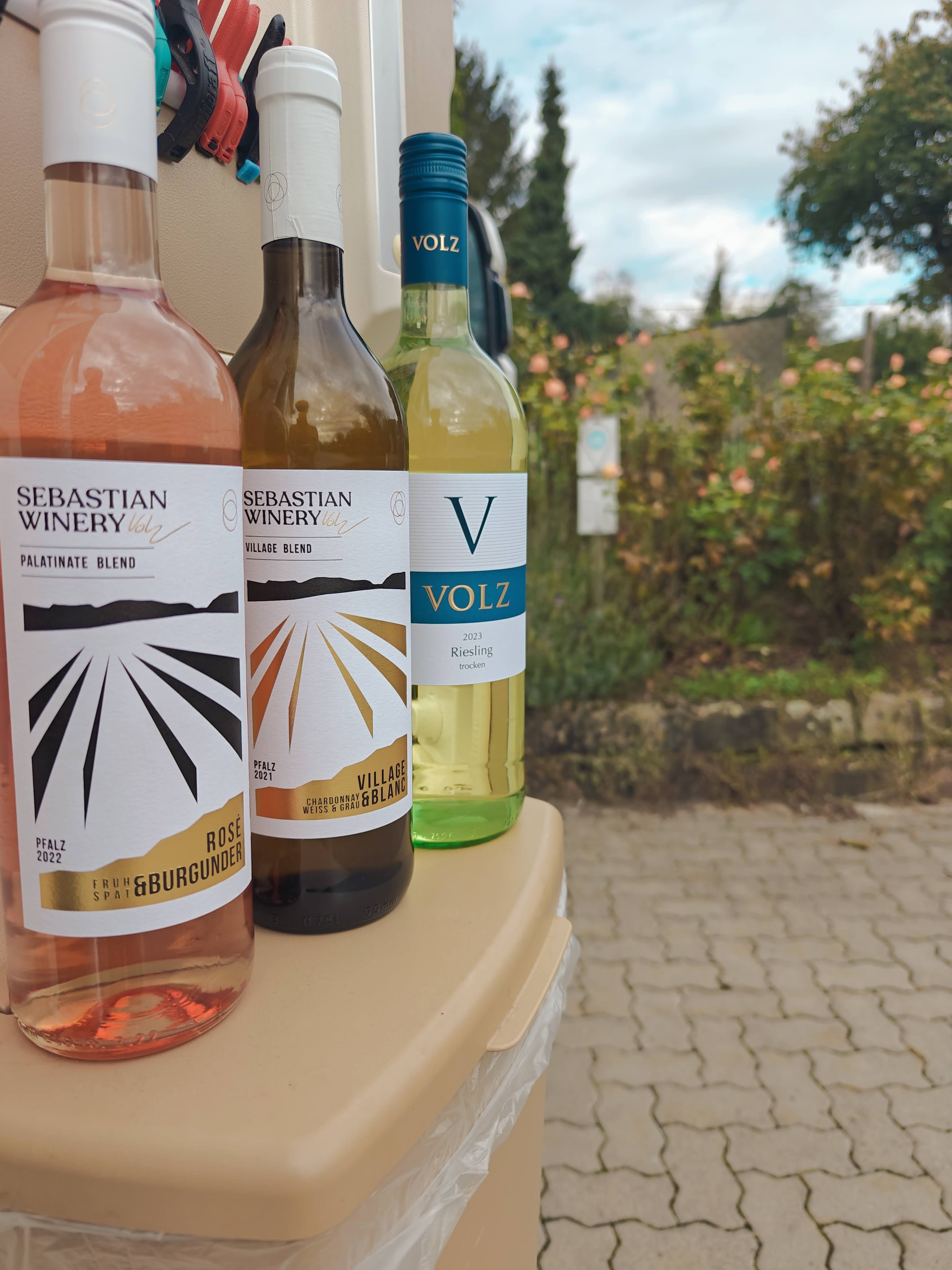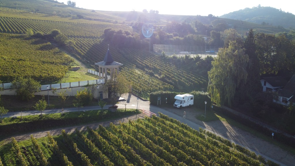 So schauten wir kurz in die Landvergnügen APP und entschieden noch ein Stückchen weiter zu fahren. Wir riefen beim Weingut Volz & Sohn an und fragten, ob wir über Nacht bei ihnen stehen, und natürlich auch die eine oder andere Flasche Wein kaufen könnten.