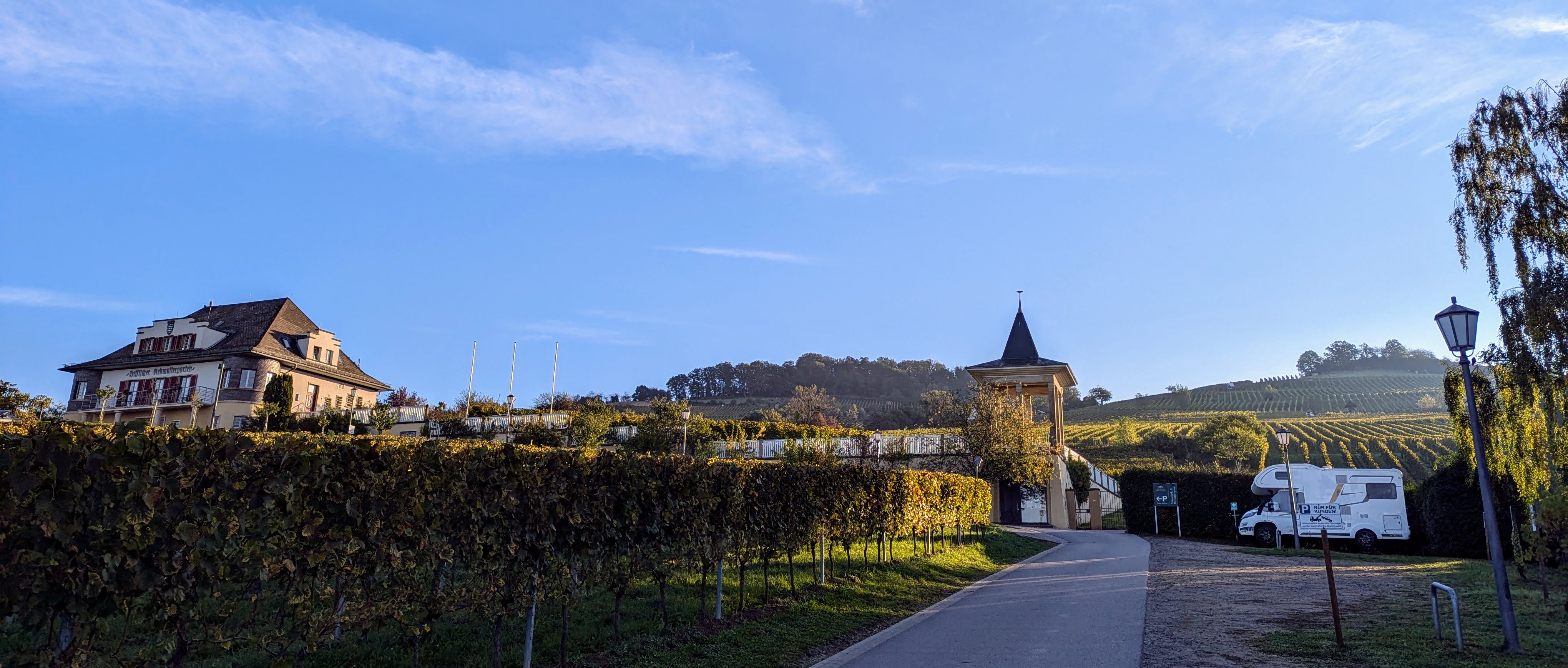 Der Abend, bzw. die Nacht war wieder herrlich ruhig – wir sind so gerne hier in Heppenheim bei der Domäne. Den Ort finden wir fast noch ein bisschen schöner als das Kloster Eberbach an der „Domäne Steinberg“ in Eltville/Rheinhessen.
