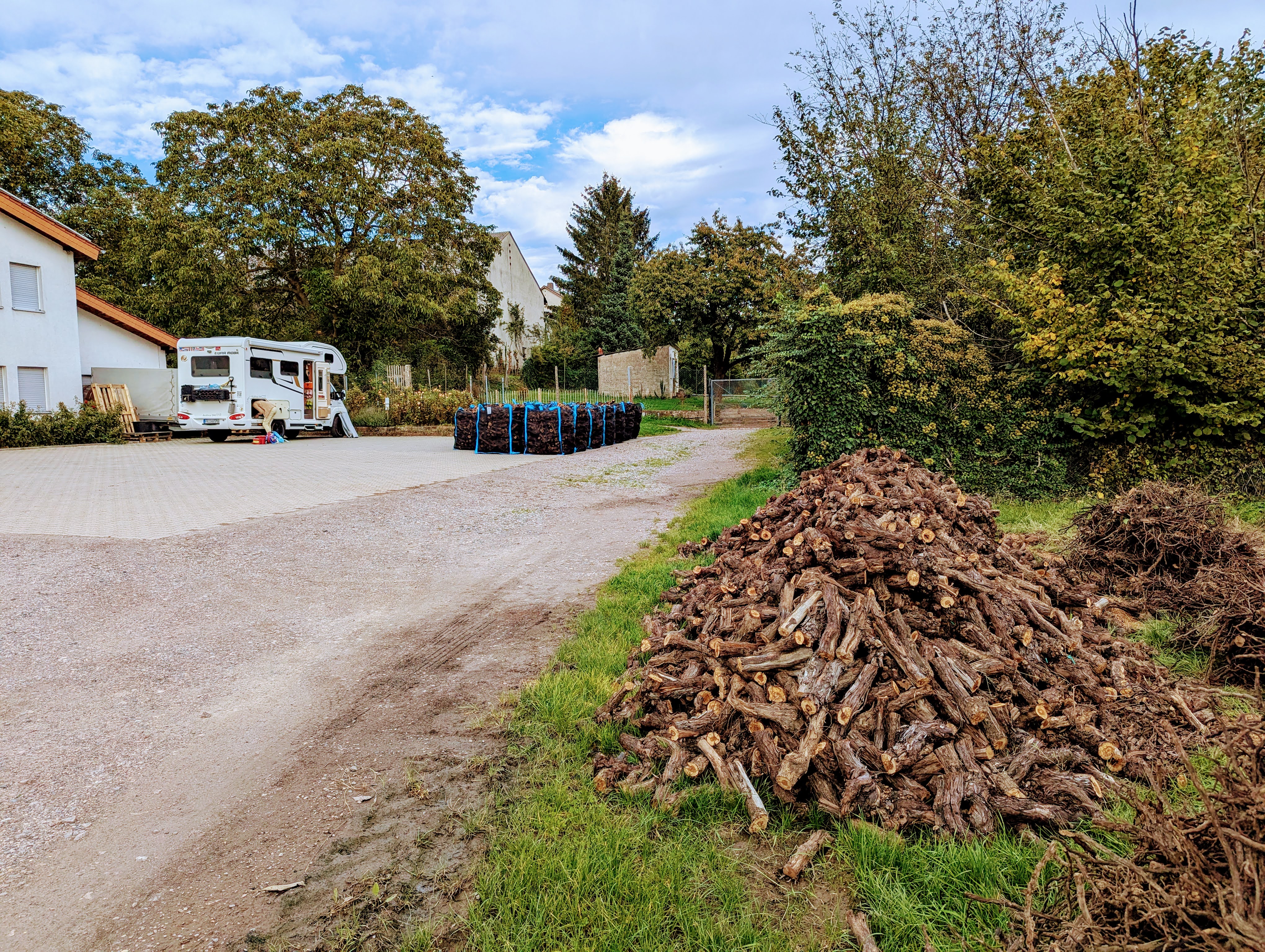 „Kein Problem“, sagte Frau Volz am Telefon zu Kate und so standen wir eine halbe Stunde später in Essingen an der Weinstraße und Frau Volz zeigte uns den Stellplatz, direkt vor dem „Weinkeller“ des Gutes.