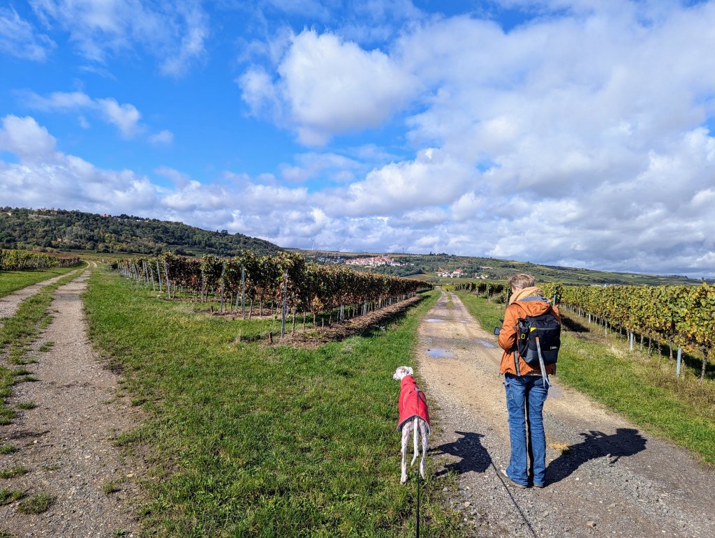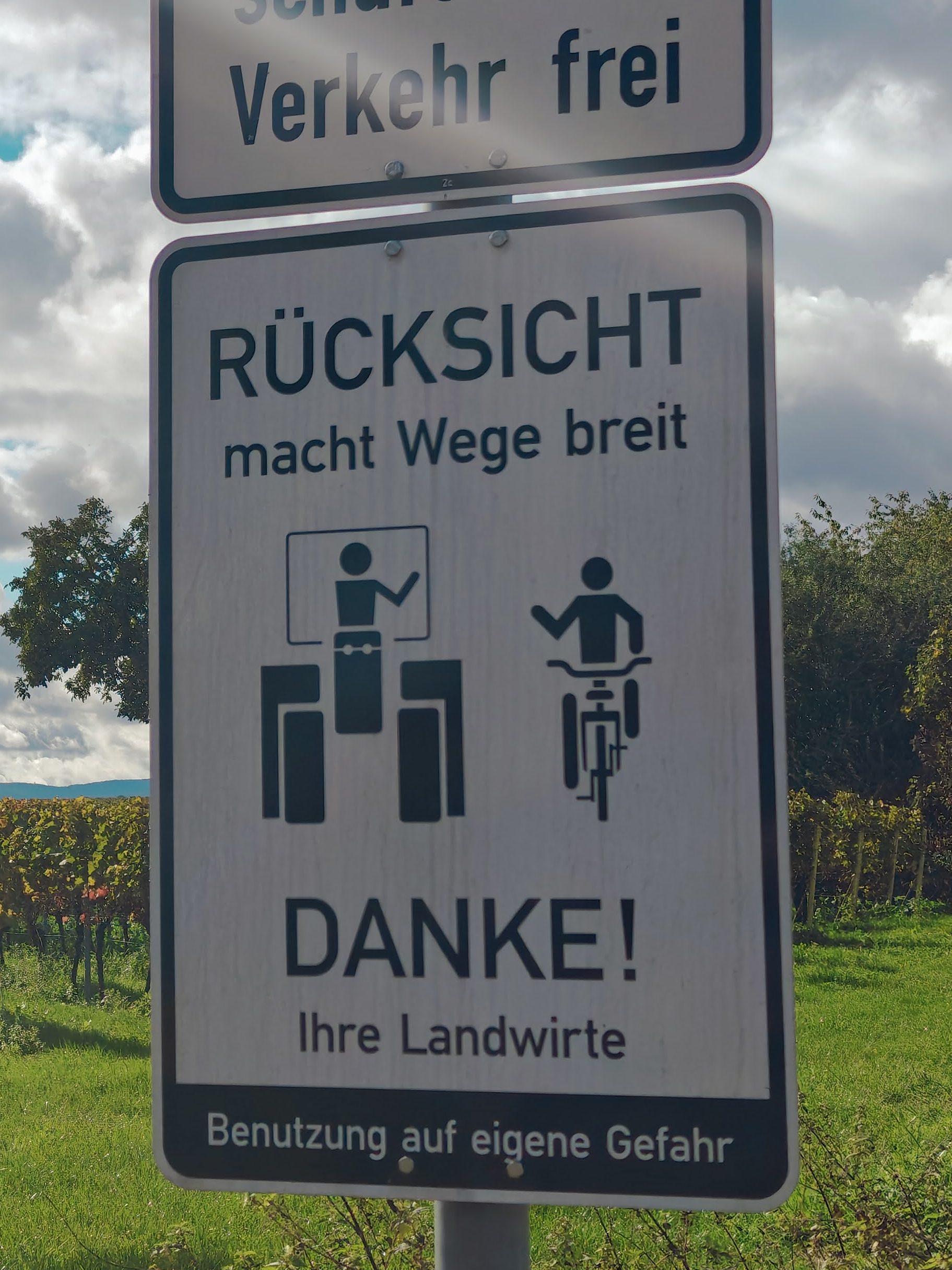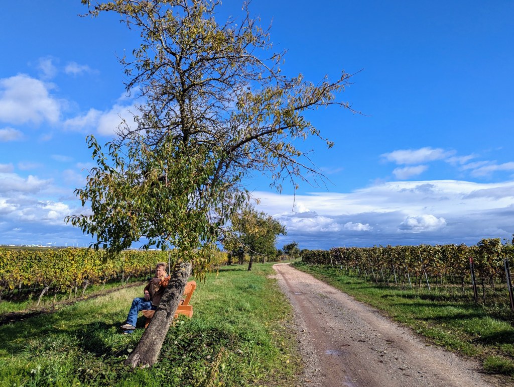 Am Donnerstag, sollte – wider Erwarten – der Vormittag etwas Sonne zulassen und so machten Kathleen und ich uns – nachdem Silke und Jens ihre drei Kartons Secco vom „Mühlmichel“ bei uns vorbeigebracht hatten – auf, noch einen kleinen Spaziergang durch das Rebenmeer zu machen. Wir wollen hier noch eine weitere Nacht bleiben und werden uns erst am Freitag in Richtung Bad Kreuznach aufmachen.