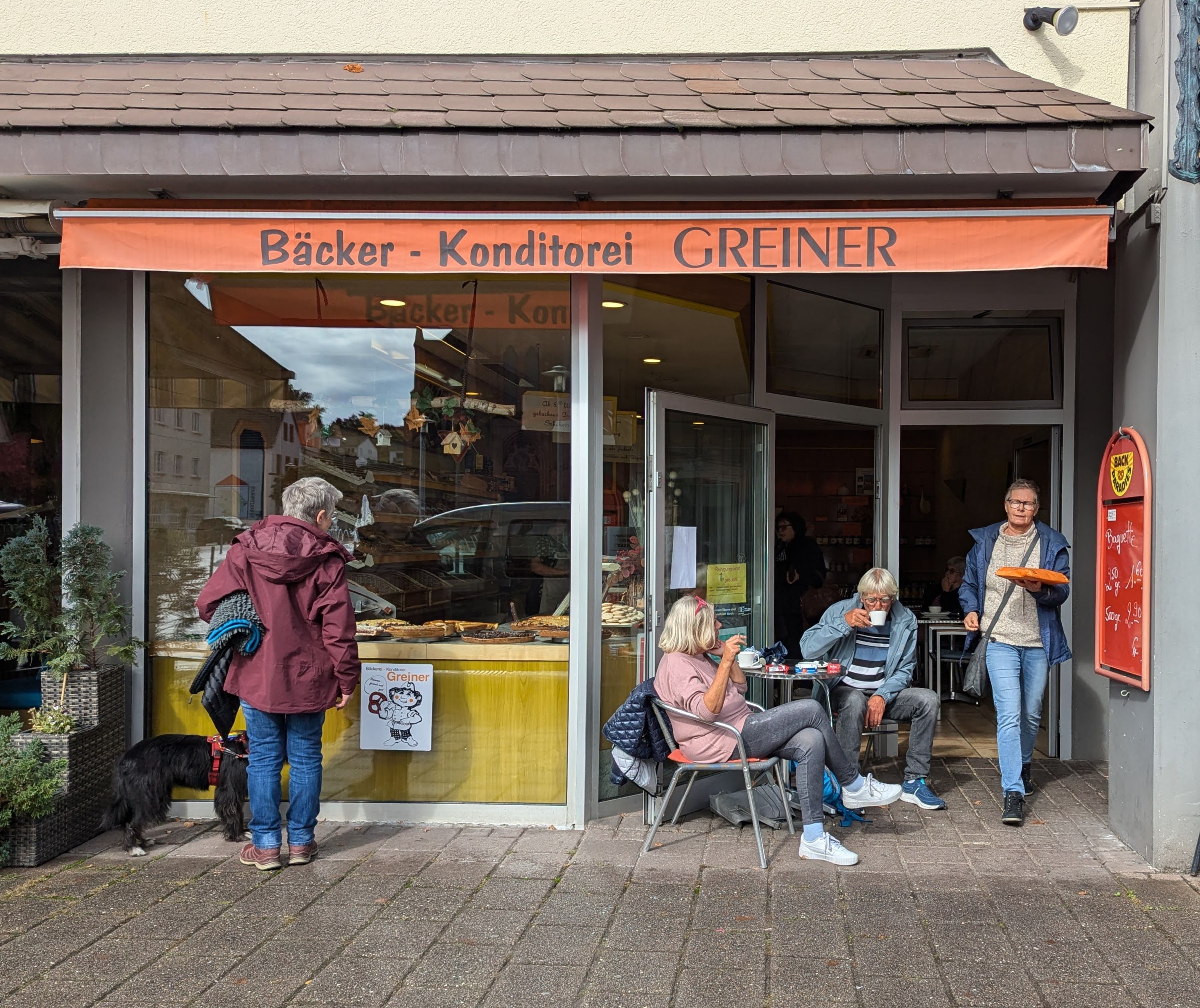 Am Nachmittag kamen unsere Freunde mit ihrer „Elli“ – einer Lotus Elise auf den Parkplatz gebogen und wir begannen unsere gemeinsame – dreitägige – Pfalzreise mit einer Flasche Sekt. Anschließend besorgten wir uns Kuchen bei der Konditorei Greiner.