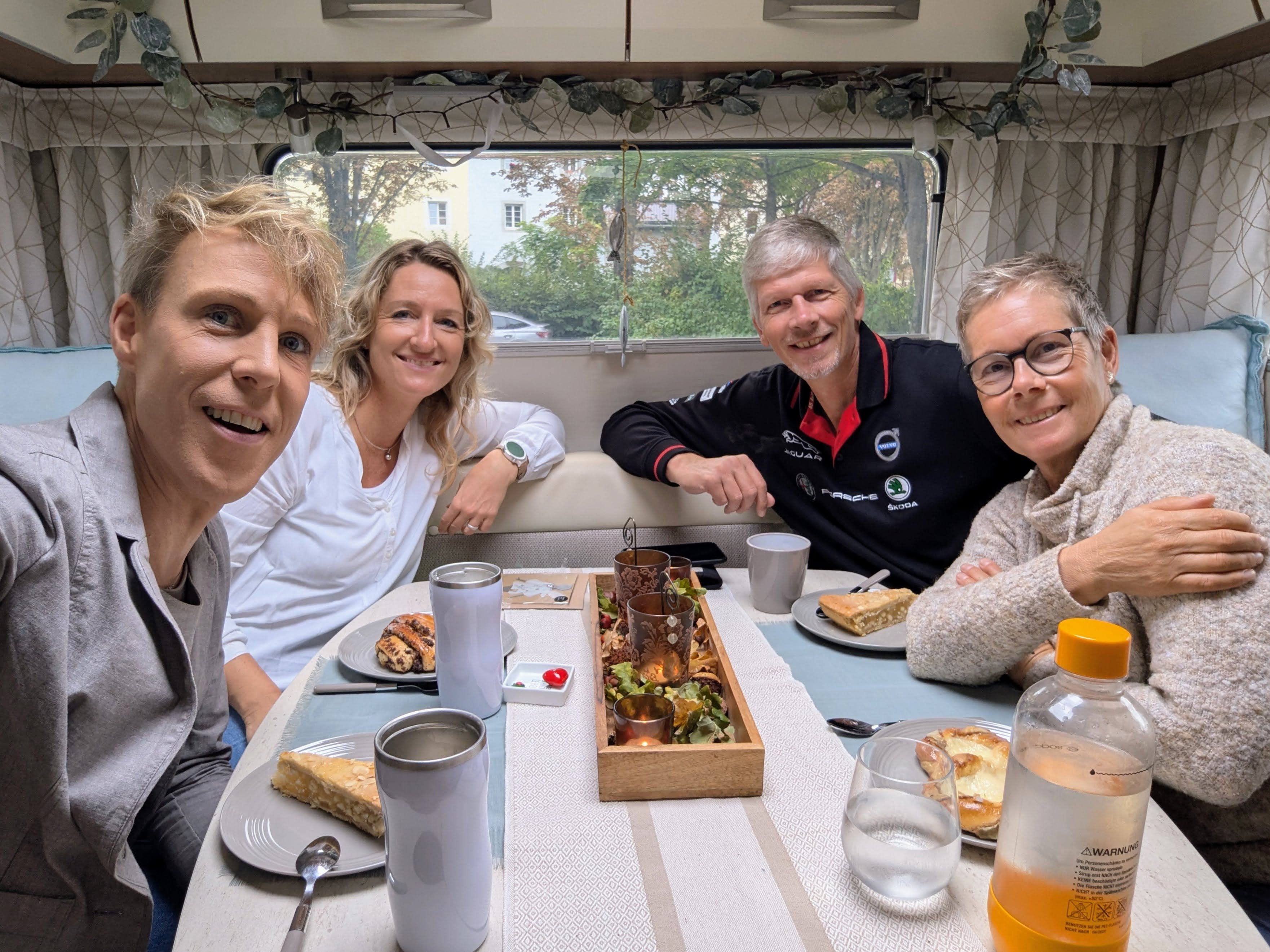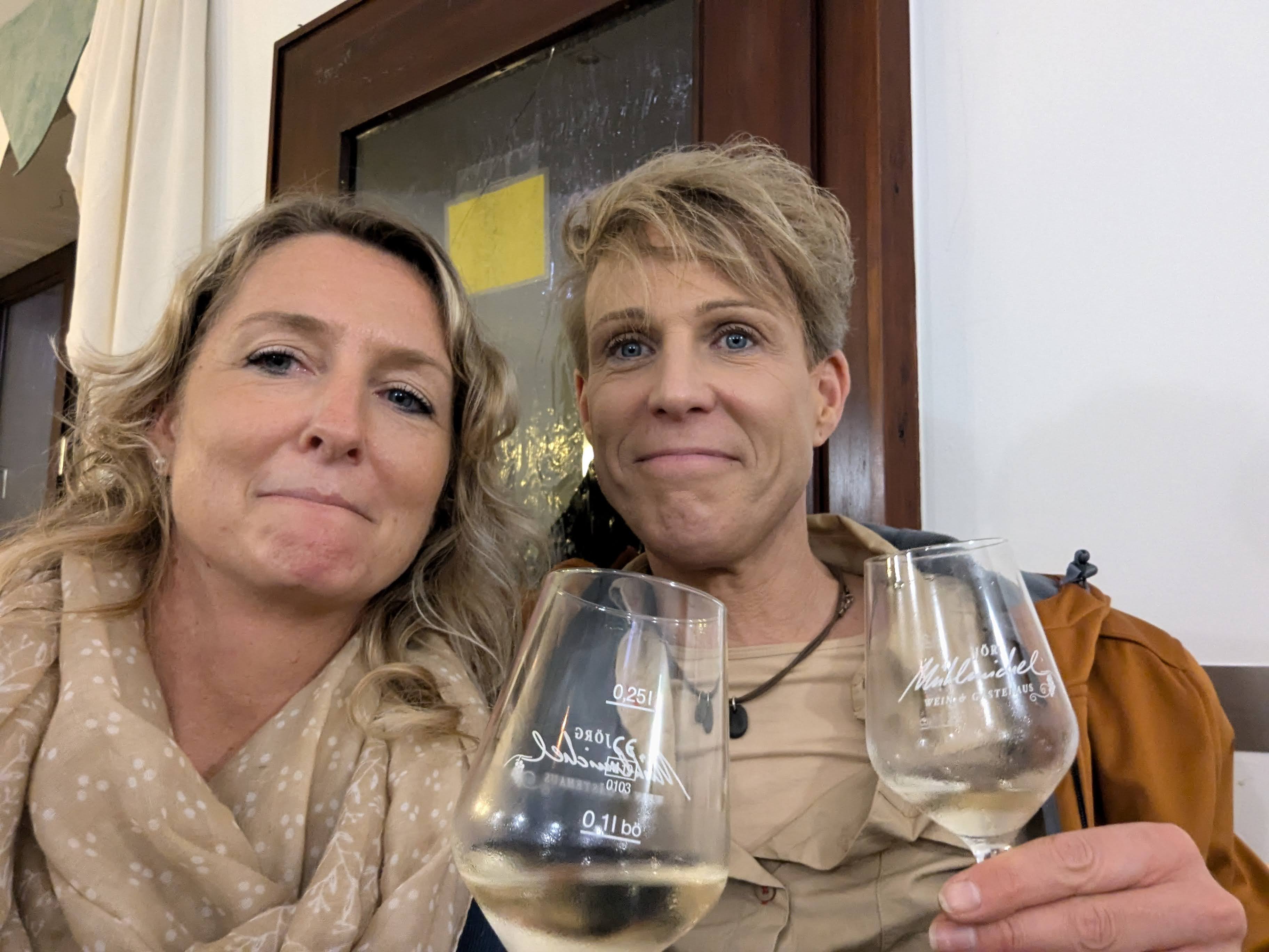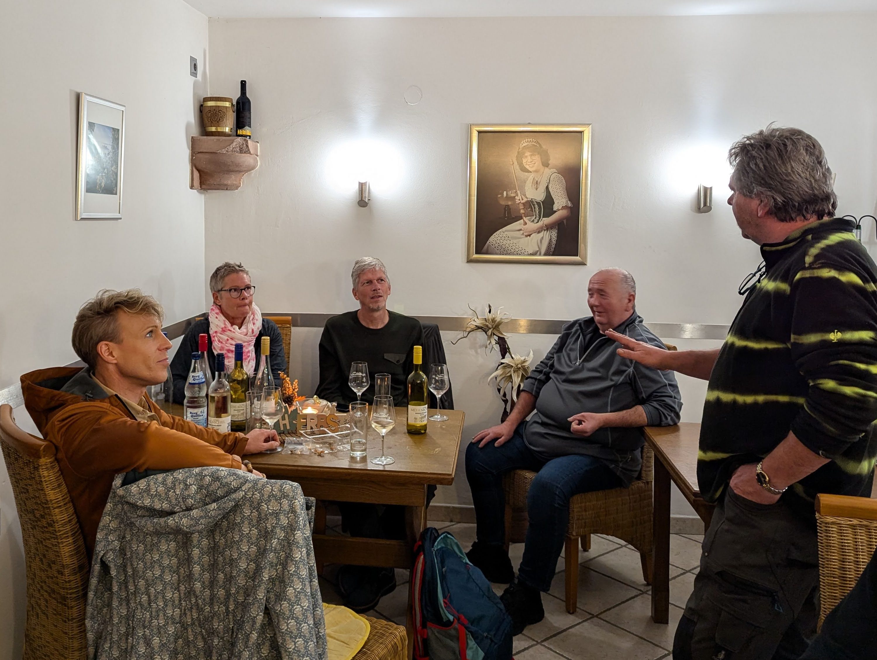 Am Dienstag starteten wir dann unabhängig voneinander und trafen uns am Nachmittag in Kirrweiler beim Weinhaus Zöller. Großer Vorteil hier: wir konnten kostenlos auf dem angegliederten „Landvergnügen-Stellplätzen“ stehen und Silke und Jens im Gästehaus der Familie Zöller ein Zimmer mieten. Gegen Abend hatten wir einen Tisch in der Weinstube reserviert.