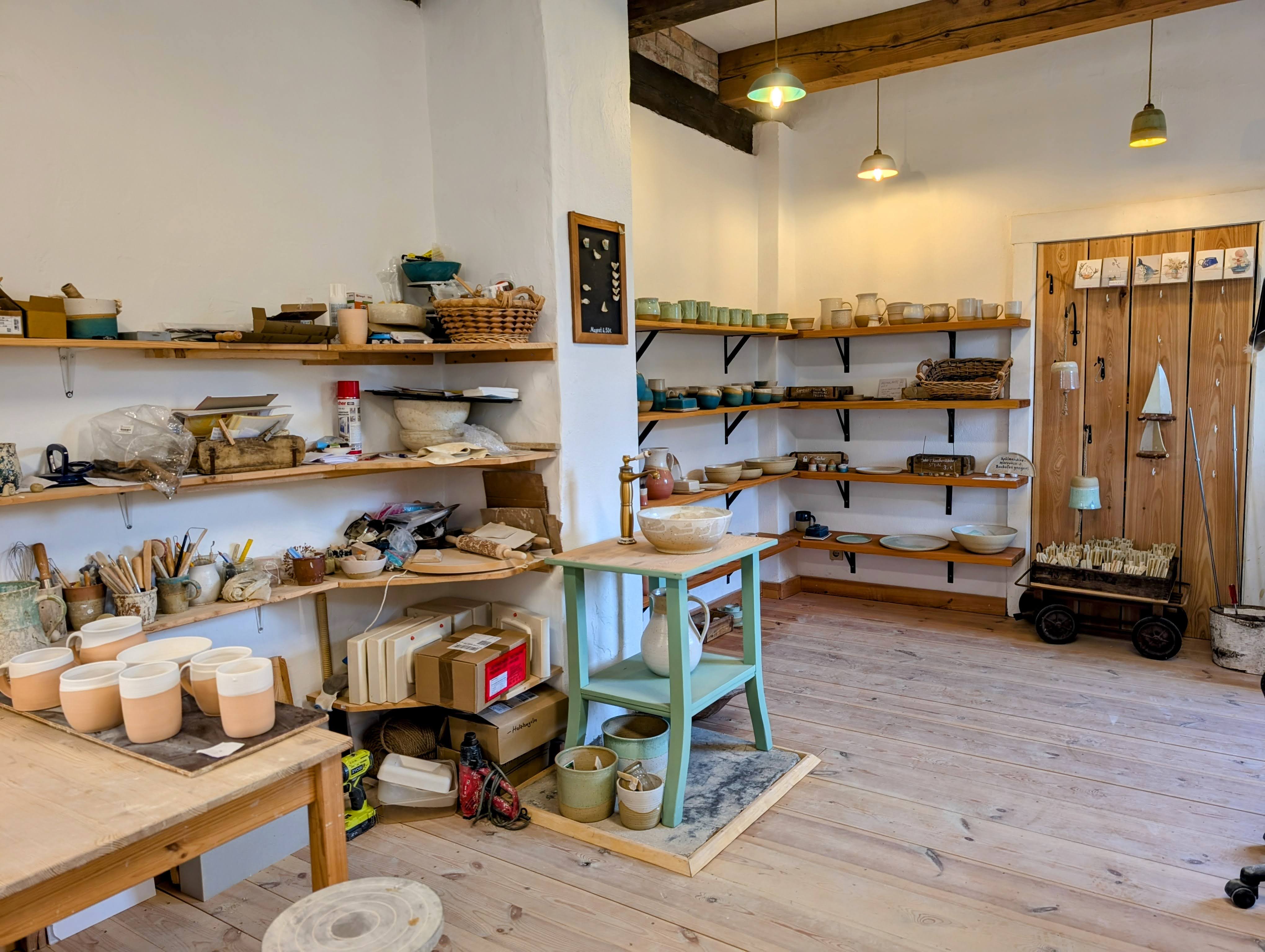 Wir wurden super herzlich von Anni und Georg empfangen und konnten direkt in die faszinierende Welt des Töpferns eintauchen – wir hatten vorher angefragt, ob ich hier auch filmen dürfte und die beiden hatten sich extra viel Zeit genommen. Es war unglaublich spannend zu sehen, mit wie viel Leidenschaft und Handwerkskunst hier wunderschöne Dinge entstehen. Von Tassen über Schalen bis hin zu kleinen Kunstwerken – man merkt sofort, dass hier jede Menge Herzblut drinsteckt.